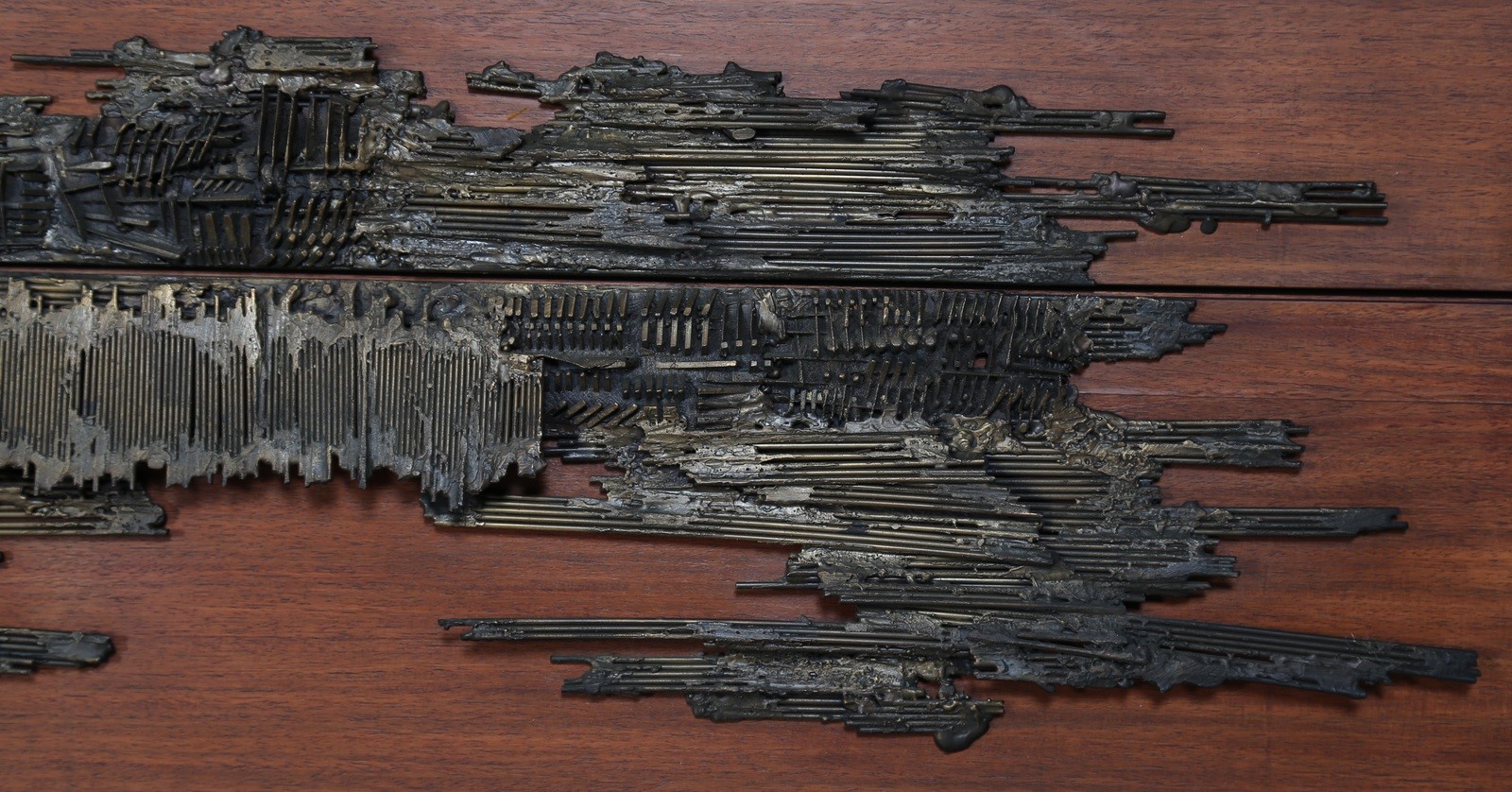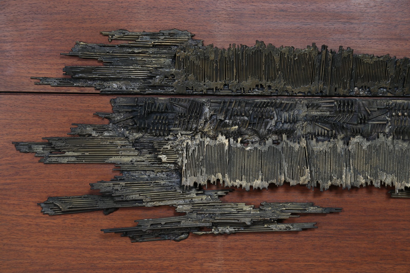 OSVALDO BORSANI e ARNALDO POMODORO Sistema componibile in palissandro composto da ripiani a giorno, modulo bar con ante decorate da scultura in fusione in bronzo di Arnaldo Pomodoro. Produzione Tecno anni 60°. -. Cm 213,00 x 280,00 x 48,00. Pubblicazioni; Catalogo di produzione Tecno.