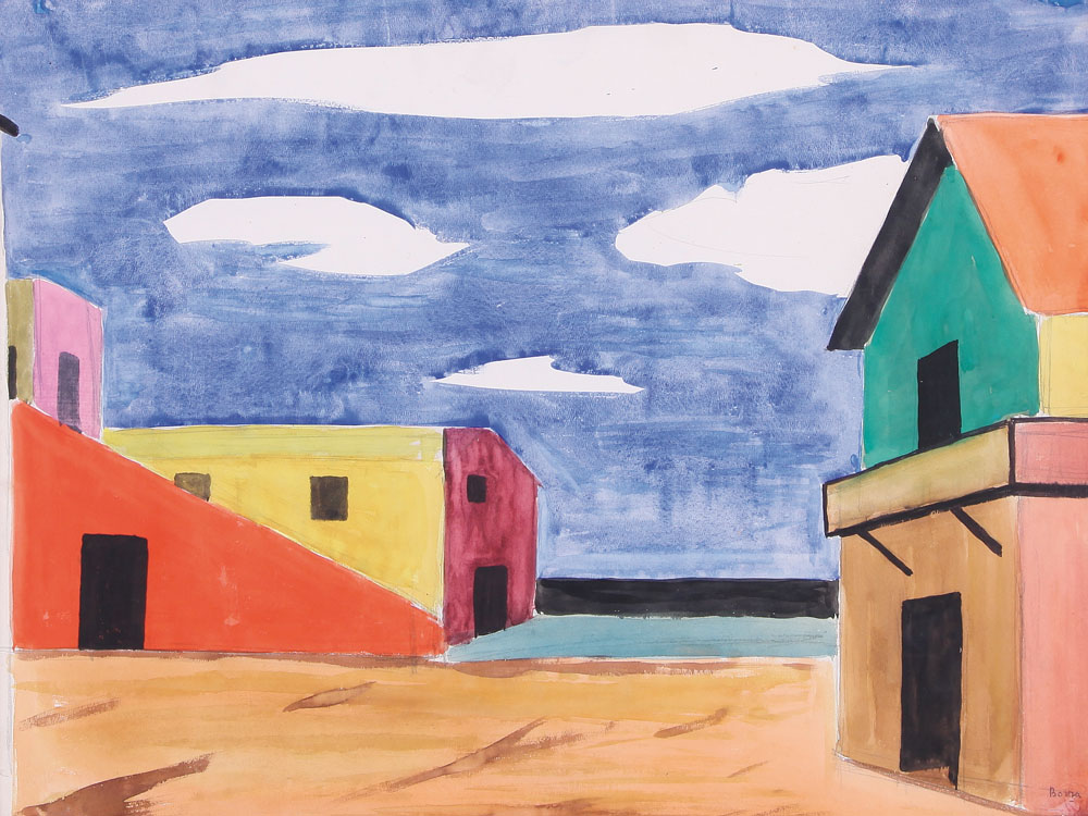 POMPEO BORRA Milano 28/01/1898 - Milano 05/11/1973 Paesaggio tecnica mista su cartoncino cm. 48x61, firma in basso a destra, firma dell'artista e conferma d'autenticità del Dott. Giuseppe Piccolo al retro.