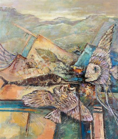 acrilici su tavola cm. 70x60, firma e anno in basso a destra, certificato d'autenticità dell'artista al retro, pubblicato in copertina della brochure dell'artista.