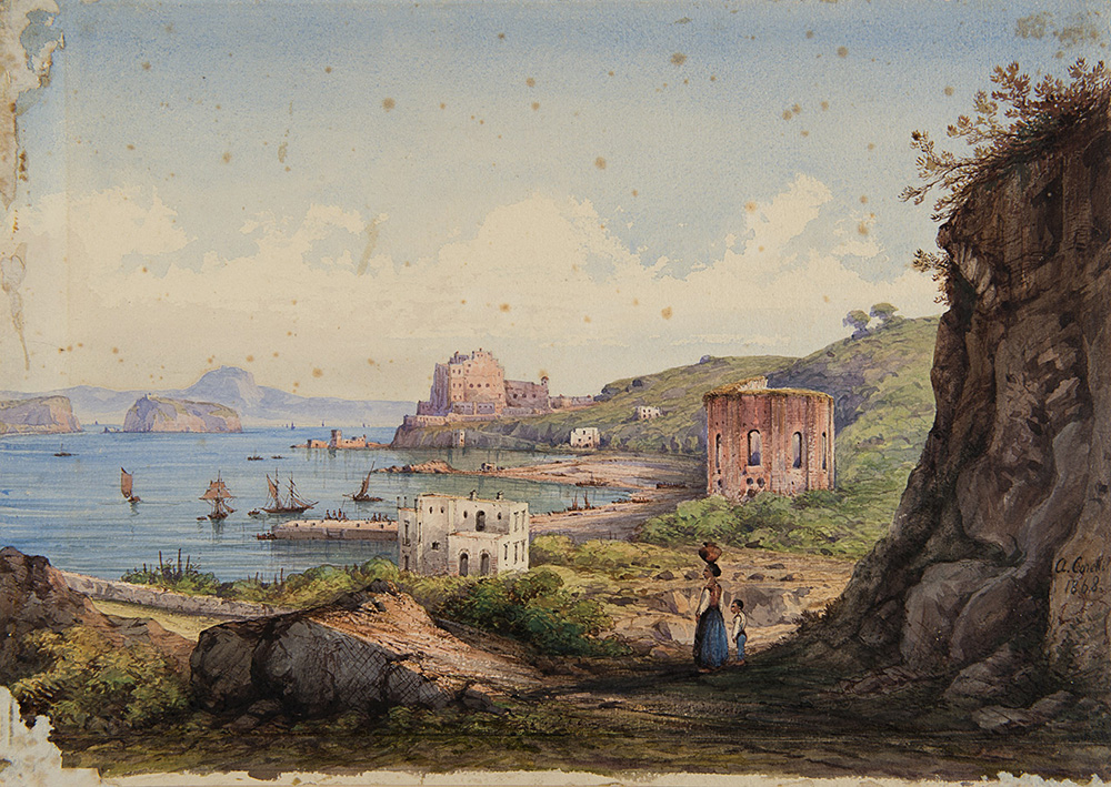 (attributed) "View of Campania" watercolour on paper (mm 230x350) signed and dated 1868 on the right