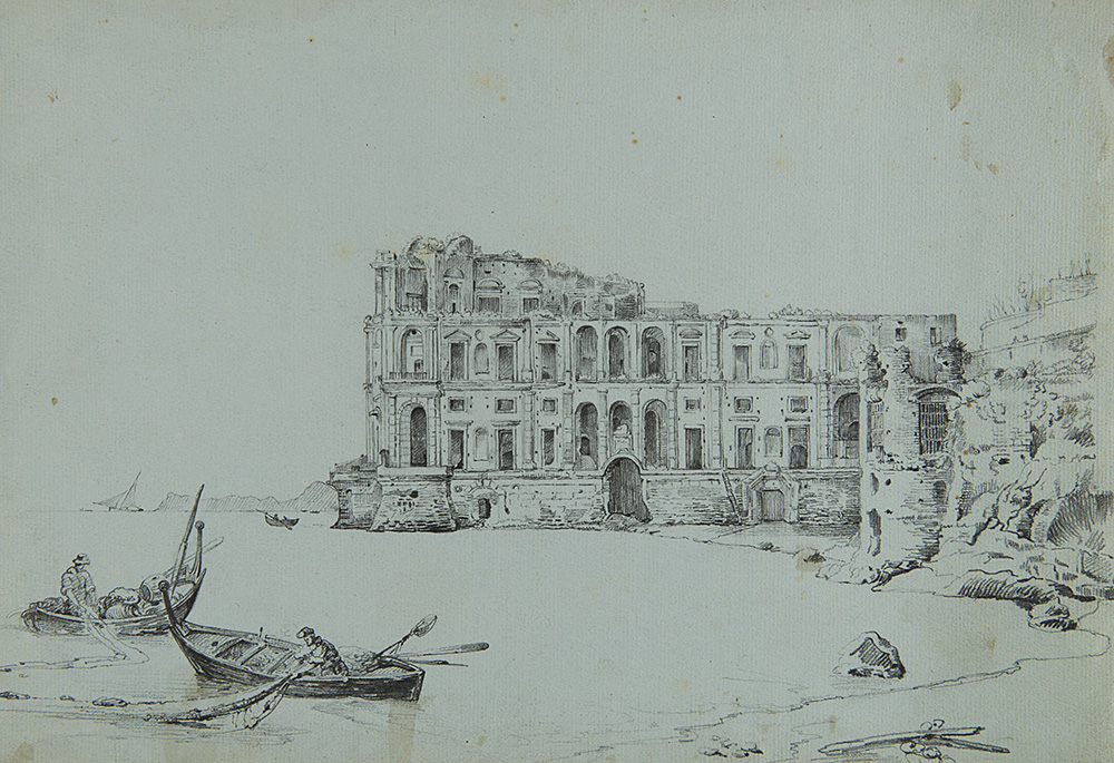 (attributed) "Fishermen on the pier" drawing, pencil on paper (mm 260x400) inscribed verso