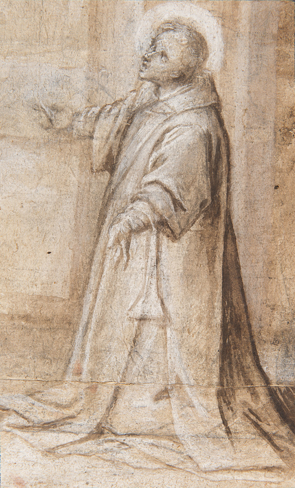 Lombard school, 17th century "Saint" pen, brown ink washed brown and traces of white lead (mm 156x94) inscribed on verso "di Carlo Francesco Nuvolone detto il Panfilo Milanese" (defects)