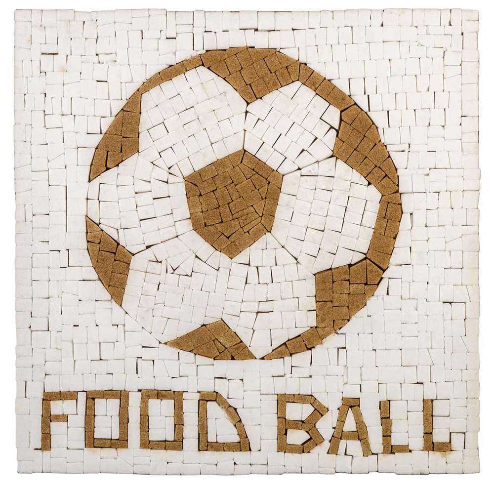 ALDO MONDINO (1938 - 2005) Food Ball 1990 Zollette di zucchero su tavola 50 x 50 cm Firma e data al retro PROVENIENZA: Collezione privata, Piacenza