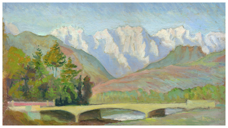 SANTI MACCHIA Pisa 1884 – Pisa 1964 Ponte Sul Frigido Olio su cartone 20 x 34. Firma in b. a d. Pubbl.: “Santi Macchia” catalogo mostra a cura di Silvio Guarasci, Saletta Viviani, Pisa, 24 novembre 2001 – 13 gennaio 2002, p.35. B.A.: 350