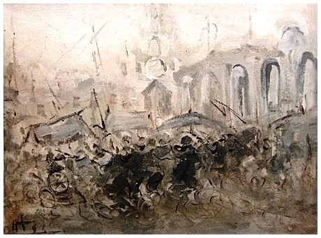 ALVARO DANTI Livorno 1911 – Livorno 1985 Senza titolo Olio su faesite 50 x 70. Firma in b. a s.; sul verso timbro di autenticità “Famiglia Danti Eredi” con firma del figlio dell’artista, Roberto Danti + timbro “N” su cera lacca. B.A.: 150