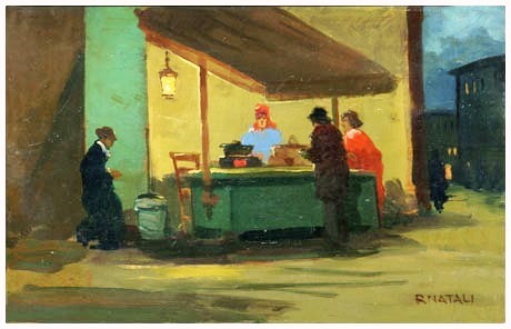 RENATO NATALI Livorno 1883 – Livorno 1979 Senza titolo Olio su tavola 23 x 37. Firma in b. a d.; sul verso firma + timbro galleria Stefanini, Livorno + firme ignote. B.A.: 600