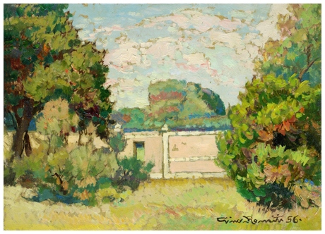 GINO ROMITI Livorno 1881 – Livorno 1967 Senza titolo 1956 Olio su faesite 13 x 18. Firma e data in b. a d. B.A.: 500