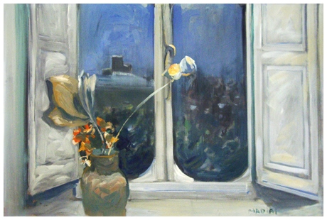 MARIO MADIAI Livorno 1944 Nevicata dalla finestra 1968 Olio su tela 60 x 90....