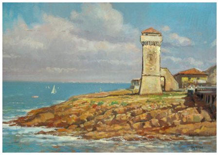 GIACOMO VACCARO Sassetta 1935 La torre di Calafuria, Livorno Olio su masonite...