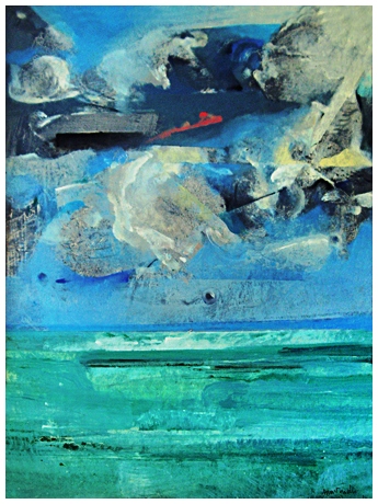 GIUSEPPE MARTINELLI Viareggio 1930 – Milano 2016 Il cielo sopra il mare Olio su tela 60 x 50. Firma in b. a d.; sul verso firma, titolo, tecnica e misure. B.A.: 100
