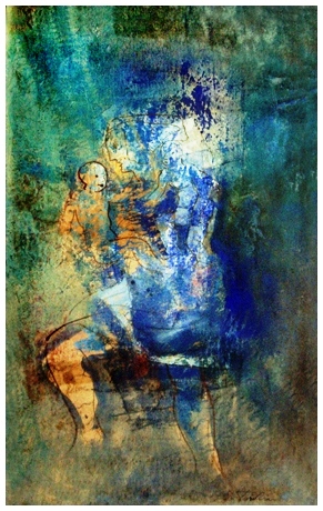 EUGENIO PARDINI Viareggio 1912 – Camaiore 2003 Maternità sul mare N.1 1966 Pittura su tavola telata 80 x 50. Firma in b. a d.; sul verso titolo, data, firma e tecnica. B.A.: 150