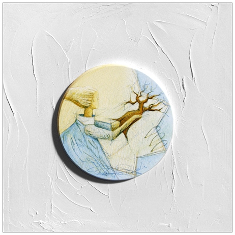 CRISTINA PALANDRI Pistoia 1957 Gli angeli ci raccontano 2006 Tec. mista su doppia tela (rotonda su quadrata) 40 x 40. Firma al c.; sul verso firma, data, titolo, misure e tecnica. B.A.: 200