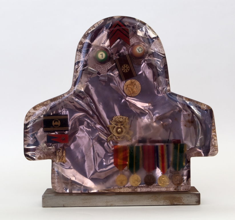 ENRICO BAJ (1924-2003) Général en polyesterScultura in resina con inclusioni...