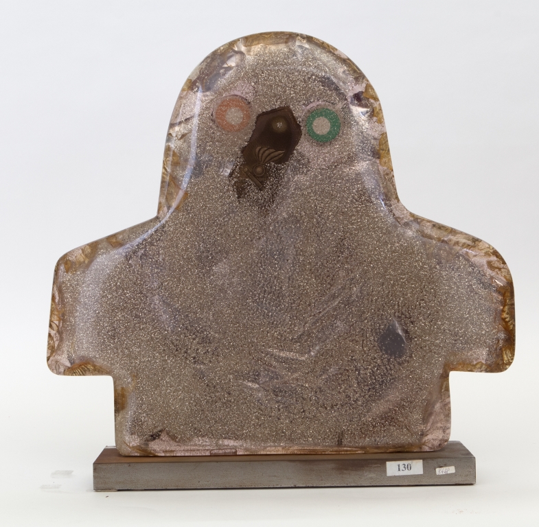 Scultura in resina con inclusioni di oggetti di vario tipo cm 51x52x5