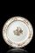 Manifattura di Pasquale Rubati, Milano, 1770/80. Piatto tondo a bordo liscio in maiolica. La cromia è a piccolo fuoco con applicazioni in oro. Lungo il bordo e sulla balza è dipinto un motivo dorato 'a punta di lance'. La decorazione centrale è un mazzo di fiori con rose (d. cm 23,5) (puntinature allo smalto, usure all'oro) Sul retro è presente il cerchio in bruno