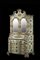 Trumeau di forma mossa e bombata in legno laccato verde dipinto a tralci di fiori e rami, cornici dorate. La cimasa a timpano spezzato. Parte superiore con due ante a specchio che rivelano quattro tiretti e scomparti. Parte inferiore con tre cassetti, all'interno della calatoia due tiretti, scomparti e segreti. Venezia, secolo XVIII (cm 139,5x238,5x66,5) (difetti e restauri)