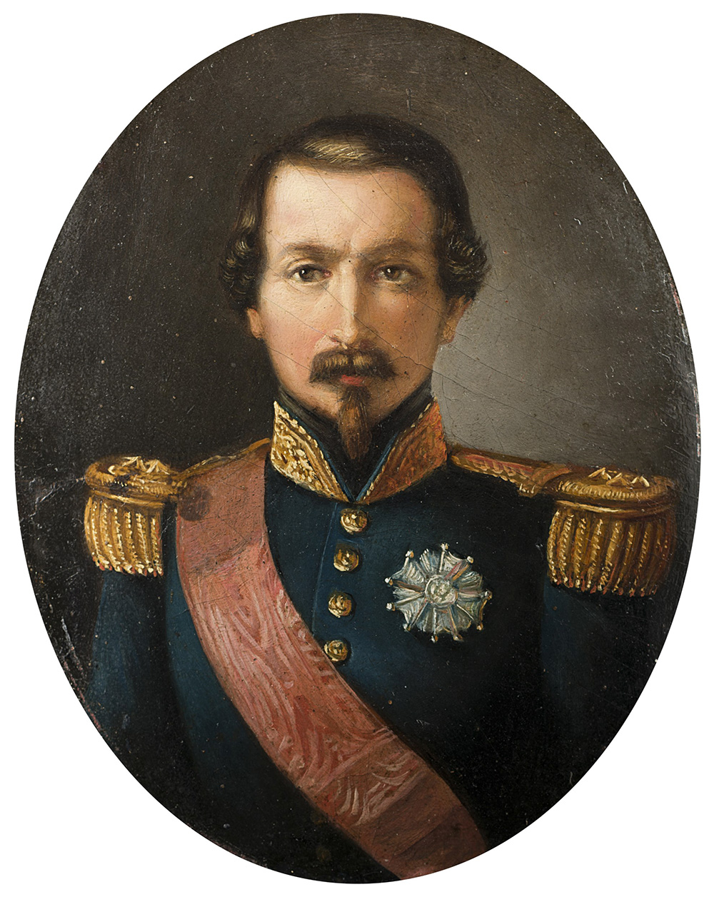 Master of the 19th century "Portrait of Vittorio Emanuele II" and "Portrait of Napoleon III" pair of oval oils on cardboard (21x16) Framed