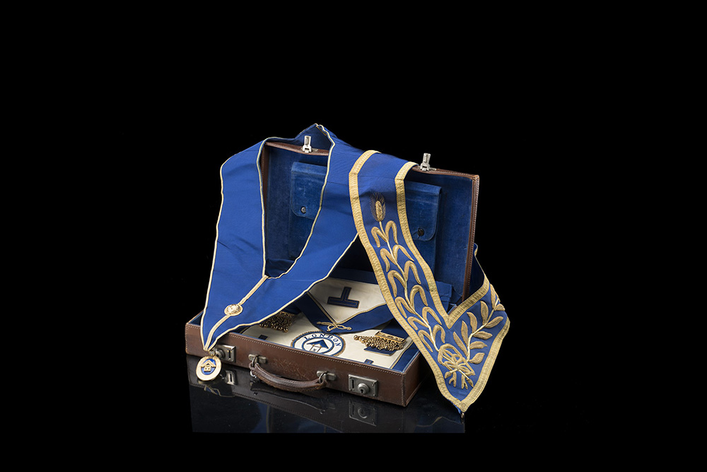 Apparato massonico della Loggia di Londra contenuto in valigia in cuoio....