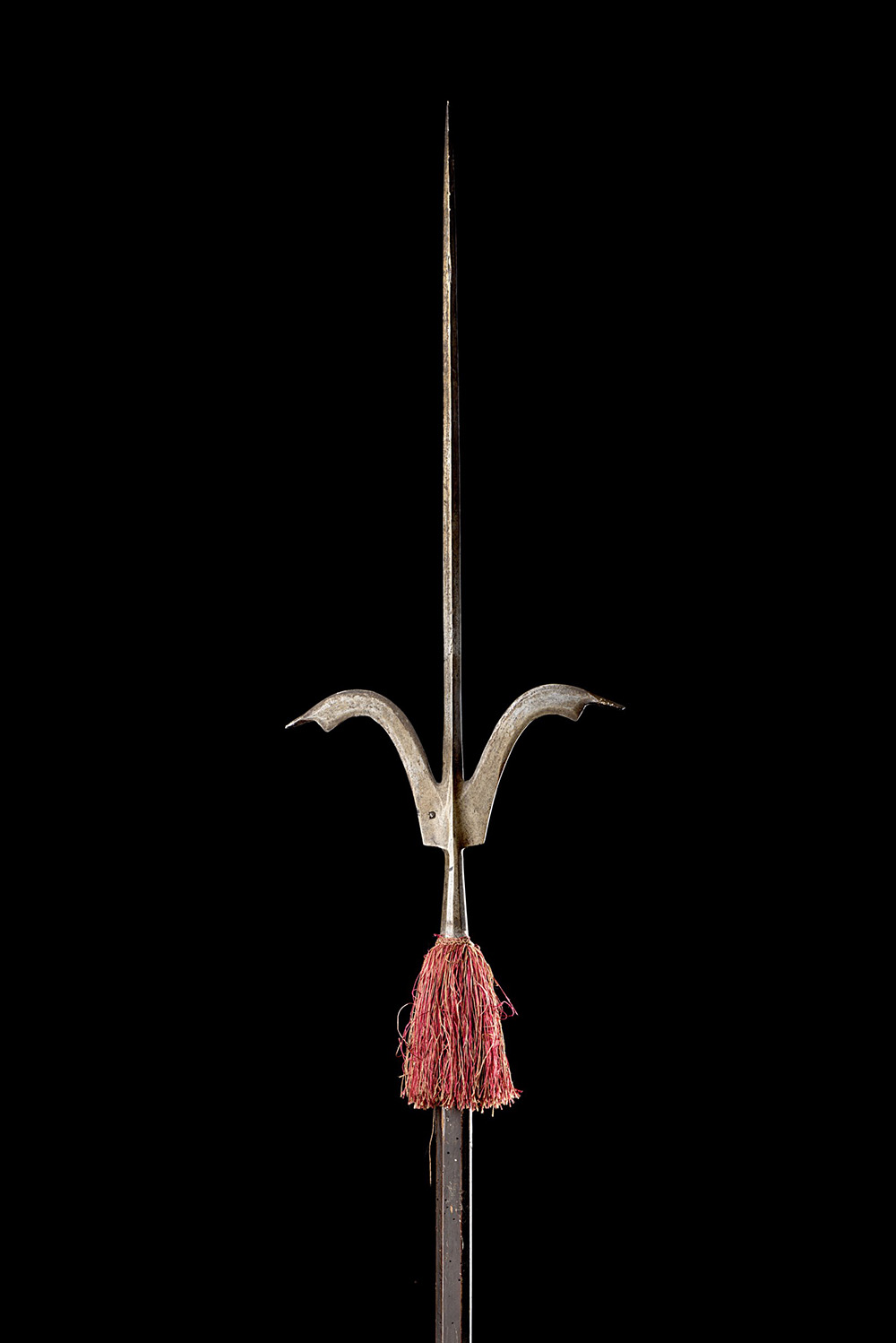 Corseca, Italia, ambito veneto, primo quarto del sec XVII. Ali al tagliamento terminanti a punte rinforzate. Lungo lo spuntone a quadrello al centro e punzonatura su una della ali. (lunghezza del ferro cm 72) (difetti)