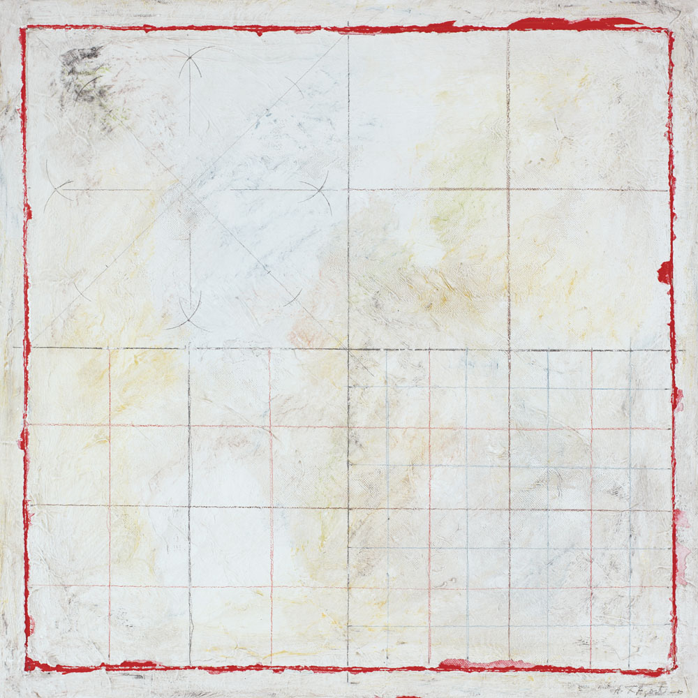 ANTONIO D’AGOSTINO Catanzaro 25/01/1938 Senza titolo tecnica mista e collage su tela cm. 90x90, firma in basso a destra, doppia dichiarazione d'autenticità dell'artista al retro, dichiarazione d'autenticità dell'artista su foto, opera senza cornice.