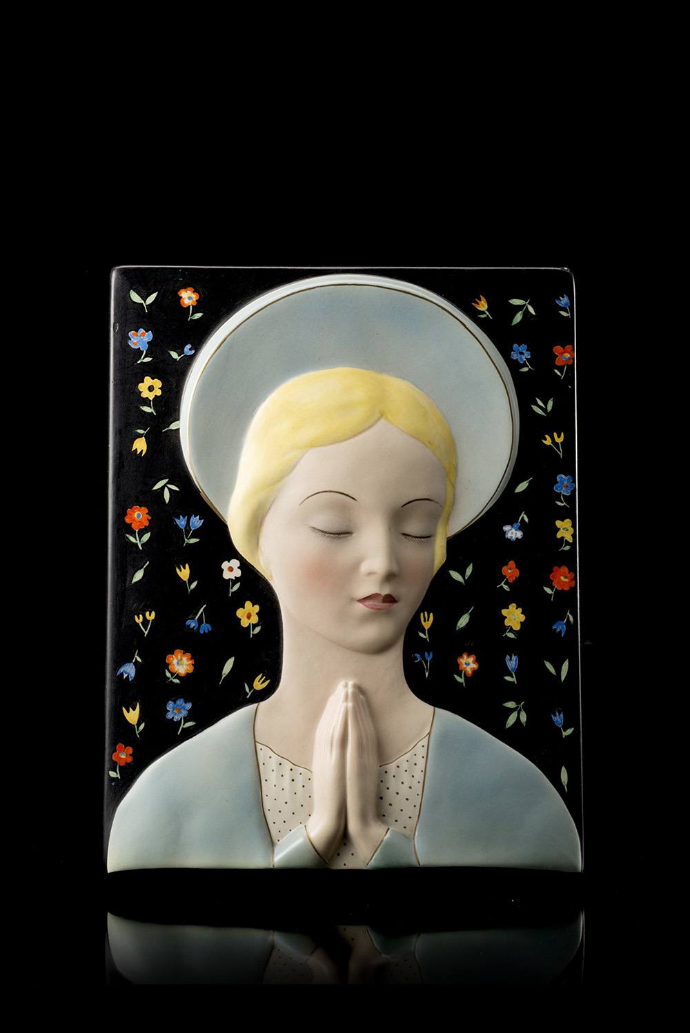 Lenci "Madonna"Formella in ceramica formata a colaggio e smaltata in...