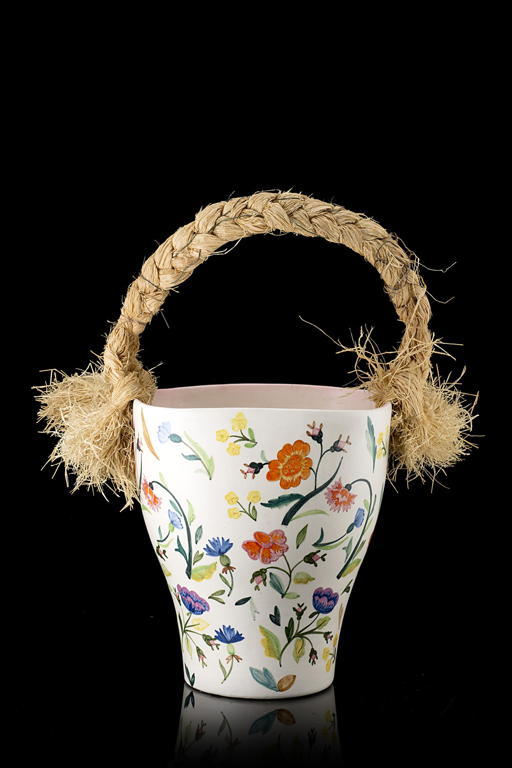 Lenci "Vaso con manico raphia"Ceramica formata a colaggio e smaltata in...