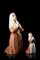 Lot of two sculptures with the same subject but different heights. Polychrome underglaze cast ceramic. Turin, 1930s. The highest signed under the base "ORIGINALE ARonzan TORINO" and with the initial "N" of the dcorator; the lowest signed under the base "GiovRonzan TORINO" and numbered "210". (h max 23.5 cm.) (defects)