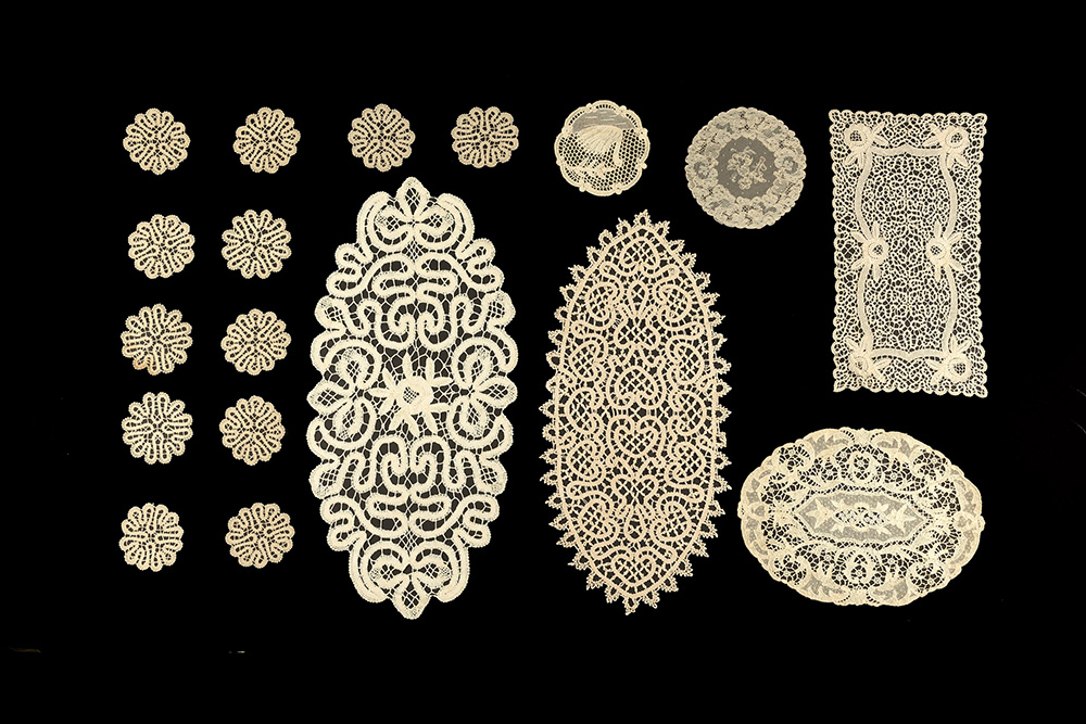 Pizzi, Lotto di diciotto centrini in pizzo di Cantù , Italia - città di Cantù, inizio secolo XX.