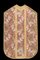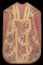Due pianete confezionate l'una con lampasso fondo Gros de Tour color rosa malva e decorata con motivo a meandro di piccole "Iles Flottantes" color crema e mazzolini di fiori policromi. L'altra confezionata con un lampasso in seta fondo operato bianco decorato da un motivo a meandro di ramoscelli verdi con fiori fantastici color violetto e broccati in oro e argento. (lievi difetti)