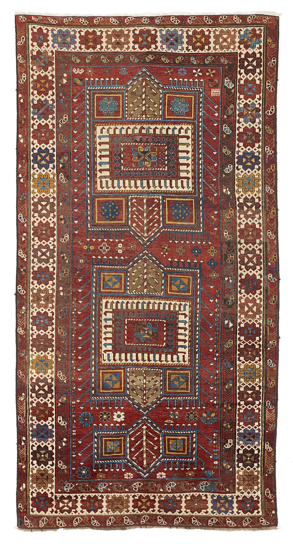 Lotto 1258 | Tappeto Kazak, Caucaso, inizio secolo XX. Disegno a medaglioni policromi su...
