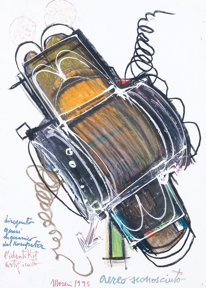 MATTIA MORENI Pavia 12/11/1920 - Brisighella 1999 L'identikit artificato, 1995 tecnica mista su cartoncino cm. 70x50, firma, titolo e anno in basso, opera registrata presso l'Archivio Mattia Moreni come da dichiarazione su foto.