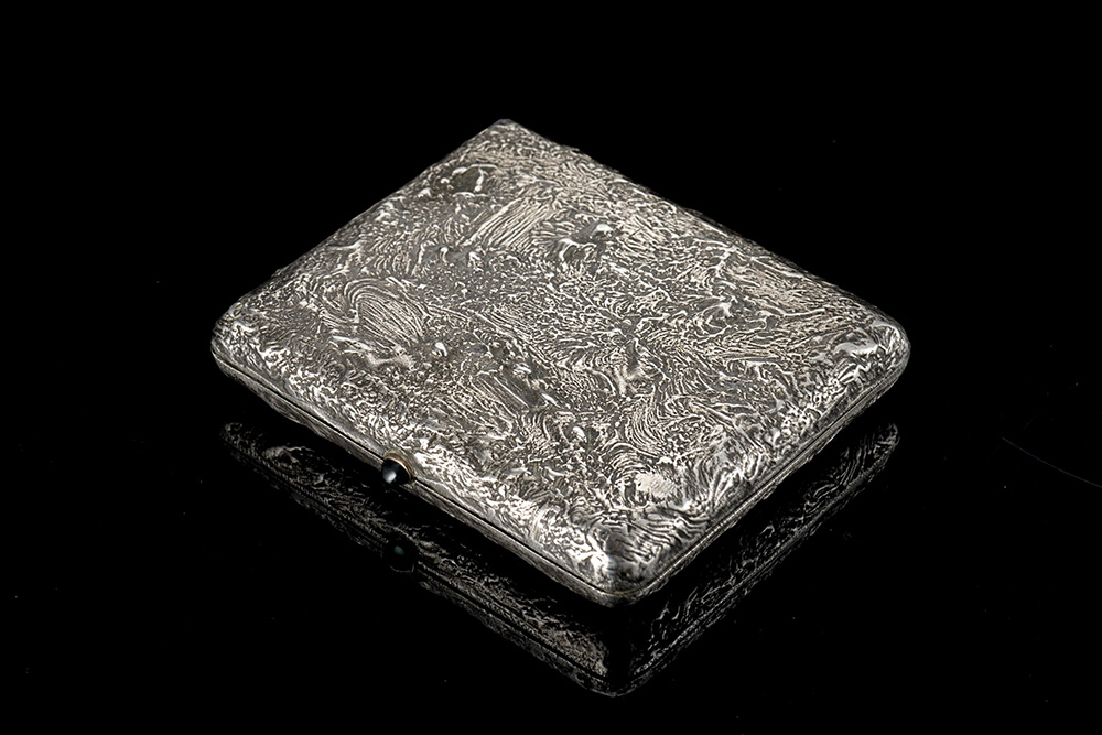 A rectangular silver cigarette case. Moscow, 1908-1927, silversmith Karl Fabergè; inventary number: 35590 (cm 9.2x7 ca.) (g 185 ca.) (minor defects)
