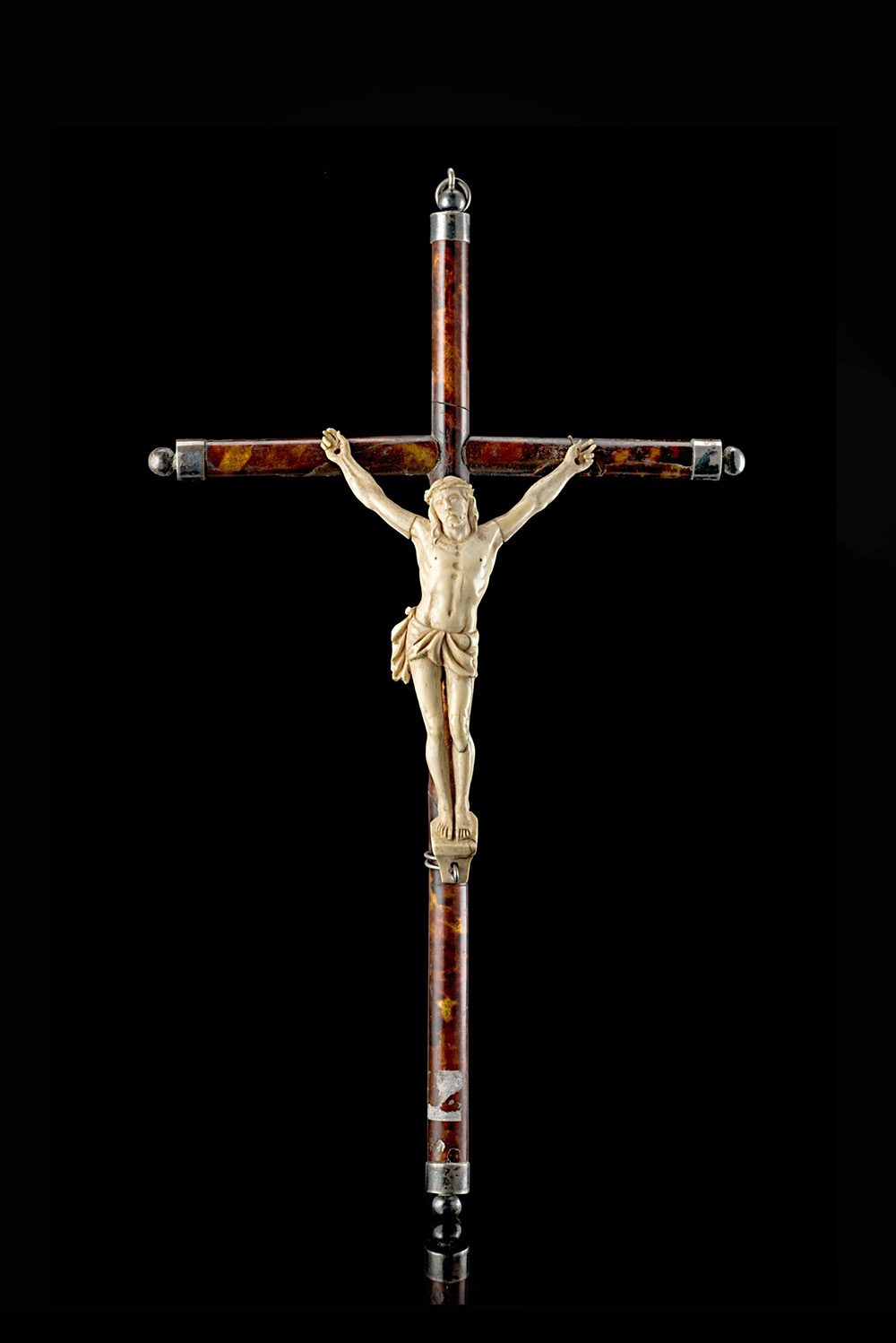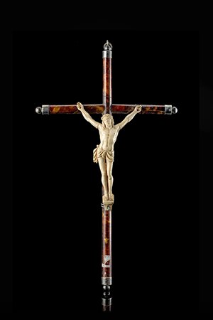 Crocifisso in avorio, argento e tartaruga. Secolo XIX (h. cm 25)...