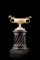 Arte del secolo XIX. Vaso in avorio con anse in bronzo cesellate ad animali fantastici poggiante su base a plinto in legno traforato di epoca successiva (h. cm 16) (difetti)
