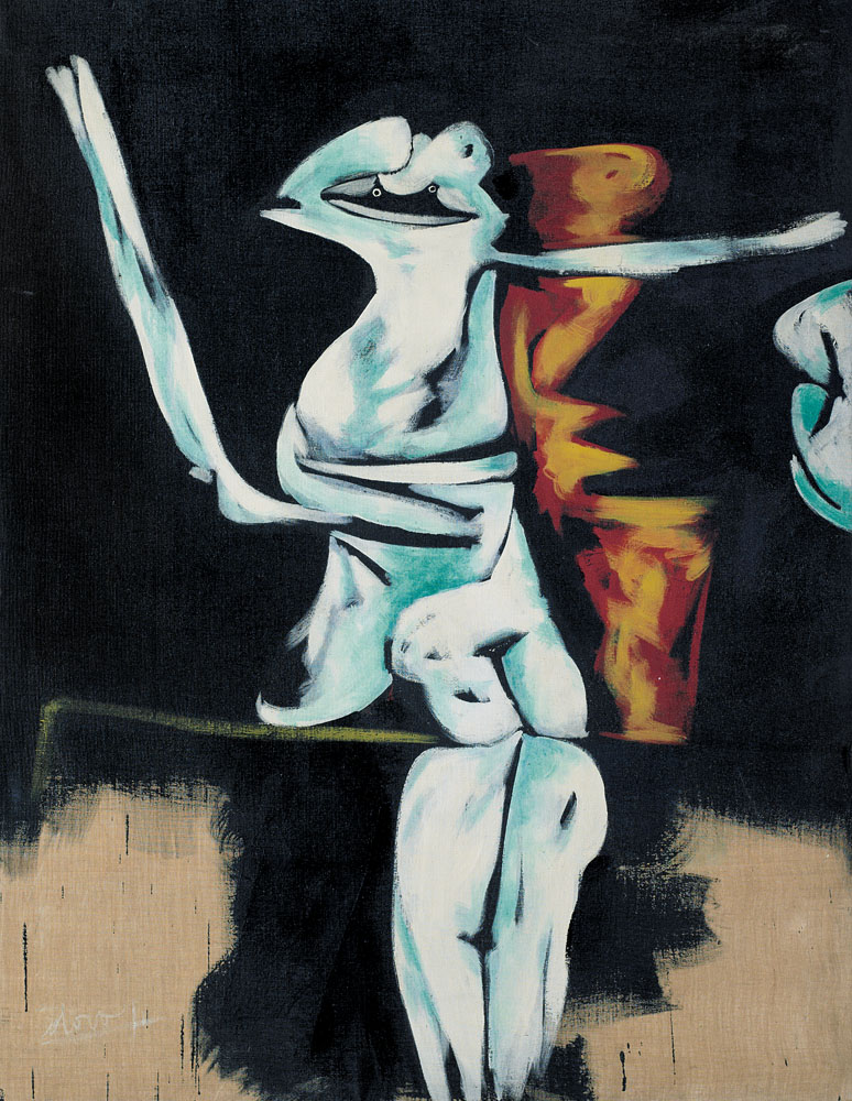 GIANNI DOVA Roma 08/01/1925 - Pisa 1991 Figura, 1960 olio su tela cm. 130x100, firma in basso a sinistra, etichetta della Galleria Milano al retro, dichiarazione d'autenticità dell'artista su foto, pubblicato su "Gianni Dova", a cura di Franco Russoli, Edizioni Grandi Opere Monografiche con tavola a colori e dimensioni errate.