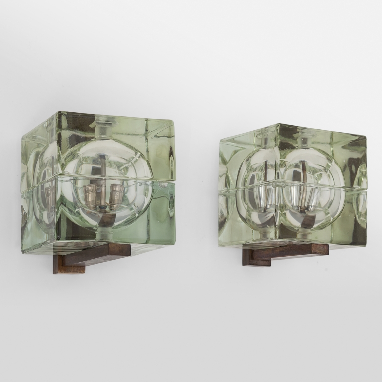 Due lampade da parete 'Cubosfera' per FIDENZA VETRARIA, 1968.