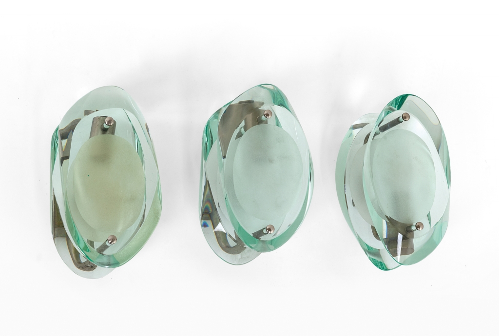 A set of three "2093" wall lights manufactured by FONTANA ARTE, circa 1961.