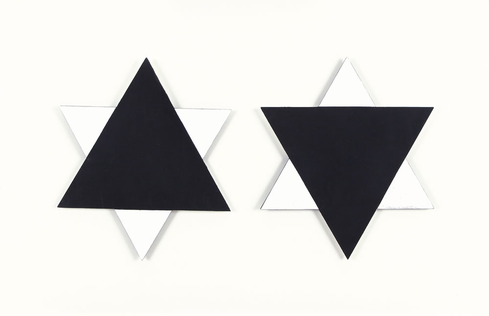 GETULIO ALVIANI Udine 05/09/1939 Selezioni costanti, 2000 tecnica mista e assemblaggio su tavola cm. 48x74, firma e dedica dell'artista ad personam sulla stella destra, titolo e anno al retro, dichiarazione d'autenticità dell'artista su foto, entro teca in plexiglass.