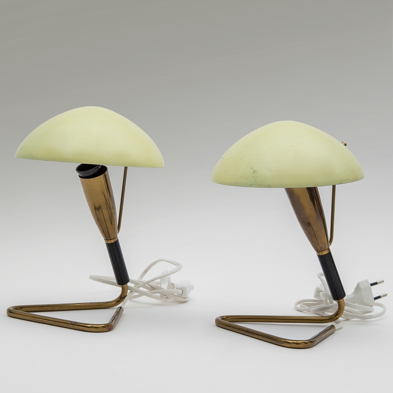 STILNOVO Due lampade da tavolo, anni '50. Ottone, alluminio laccato,...