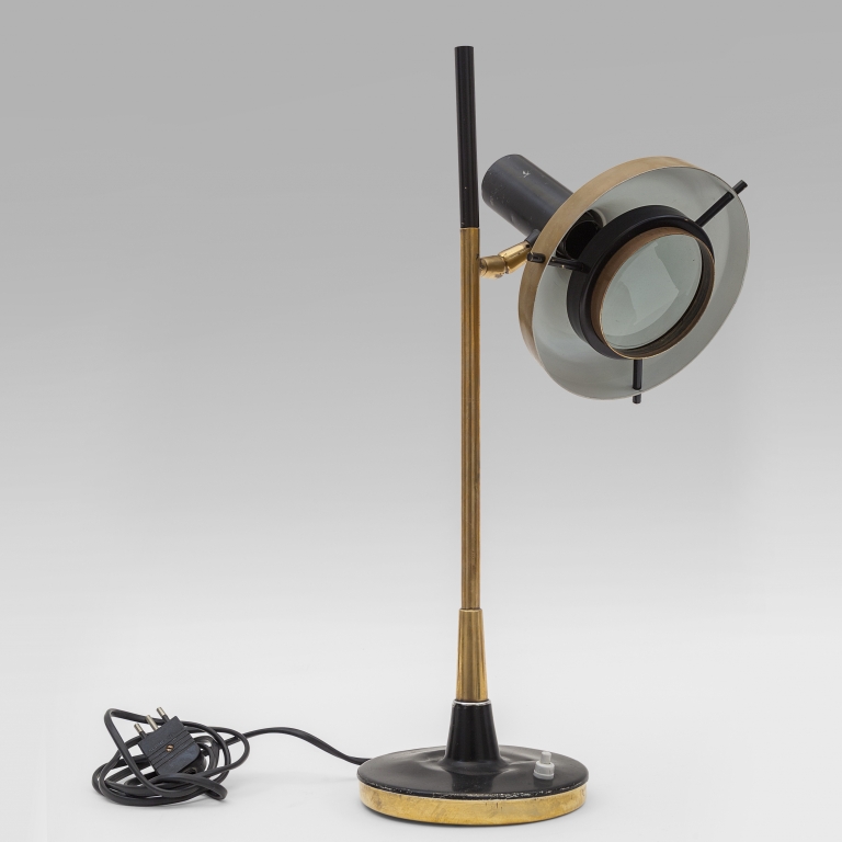 OSCAR TORLASCO Una lampada da tavolo per LUMI, Milano, circa 1960. Ottone...