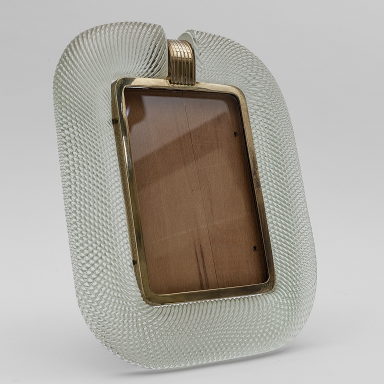 BAROVIER & TOSO Un portaritratti, anni '30. Cristallo ritorto, ottone. Marca...