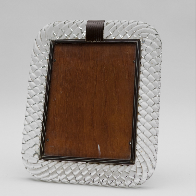 VENINIUn portaritratti, anni '30. Cristallo ritorto, ottone. Marca impressa...