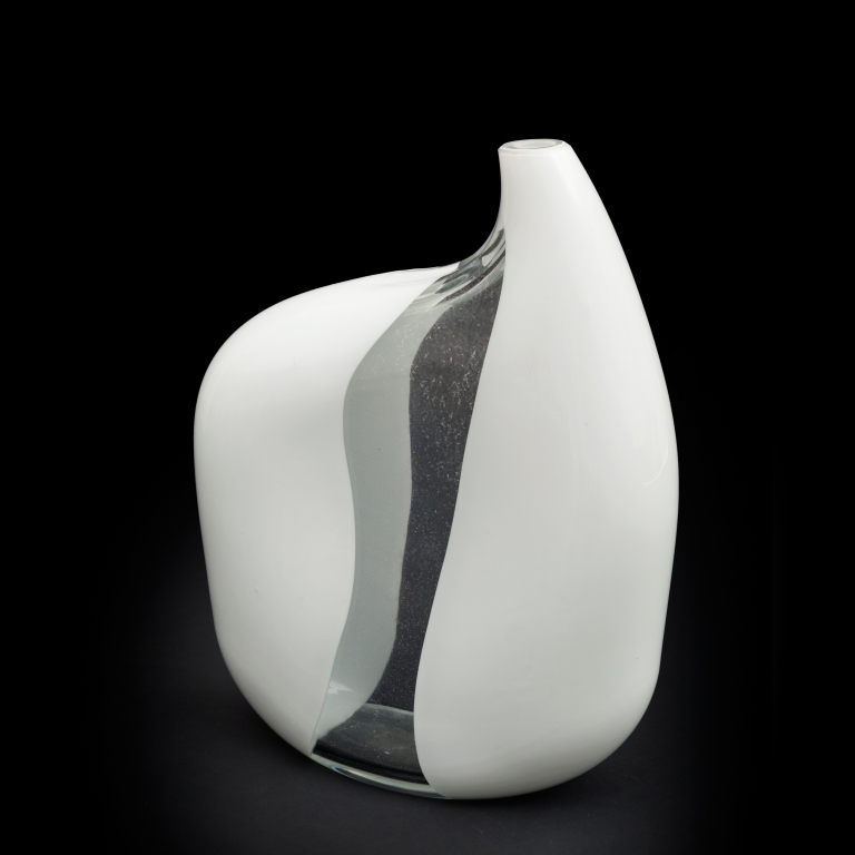 Un vaso "O P" in vetro lattimo con fascia in cristallo, 1962.
