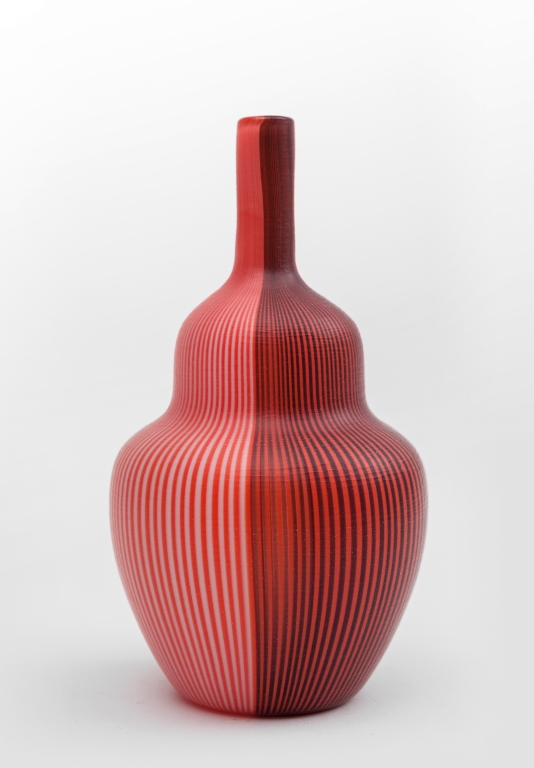 CARLO SCARPA, VENINIUn vaso in vetro tessuto a superficie battuta, circa...
