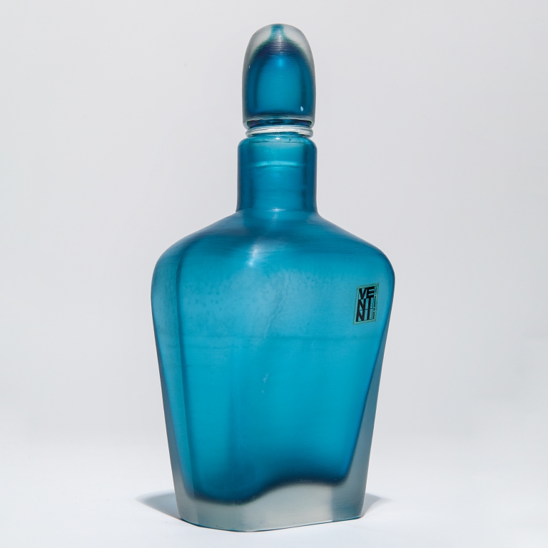 PAOLO VENINI Una bottiglia in vetro inciso, modello 4844, circa 1968. Marca...