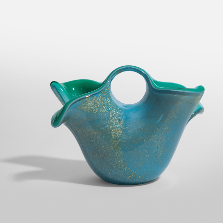 ARCHIMEDE SEGUSOUn vaso a cesto in vetro incamiciato con applicazione di...
