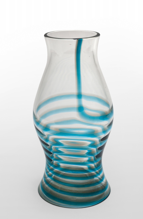 Un candeliere in cristallo con copricandela della serie "Bifilo" e decoro a canne a spirale, 1973.