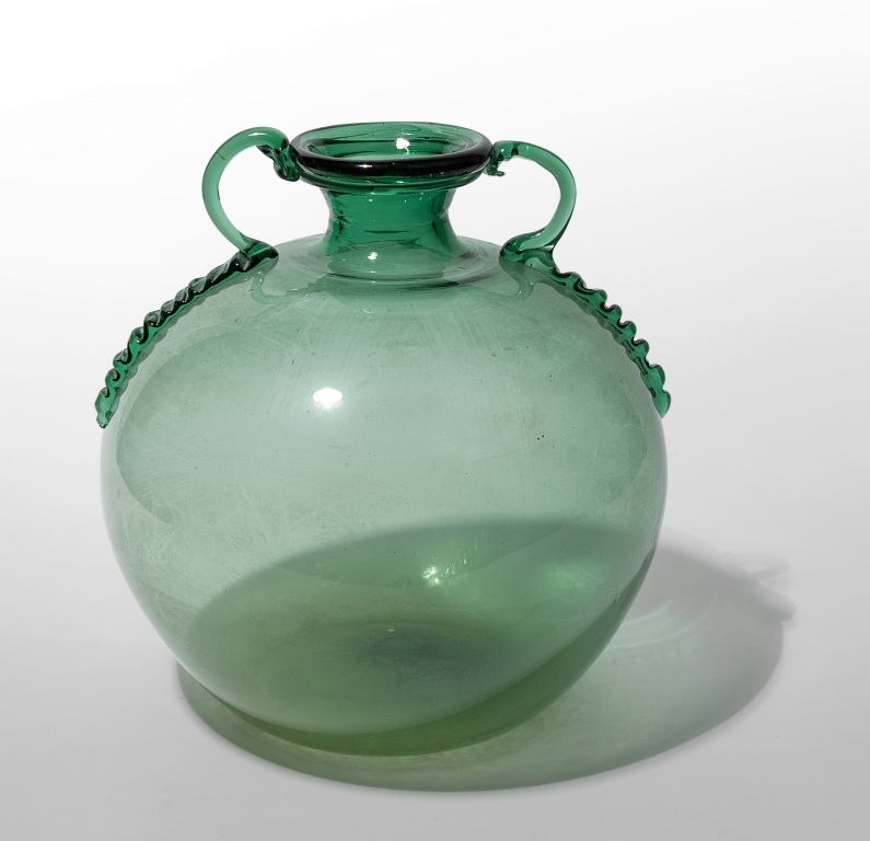 Un vaso biansato in vetro trasparente verde, modello 5457, 1925.