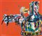 GIORGIO CHIESI Felina (Re) 27/02/1941 Cane e fiasco, 1990 tecnica mista e collage su tela cm. 60x70, firma in basso a sinistra, firma, timbro dell'artista e archivio numero C.A. 563 al retro, dichiarazione d'autenticità dell'artista su foto.