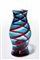 Un candeliere in vetro rosso con copricandela in vetro a canne colorate ritorte, modello 2756, 1950.